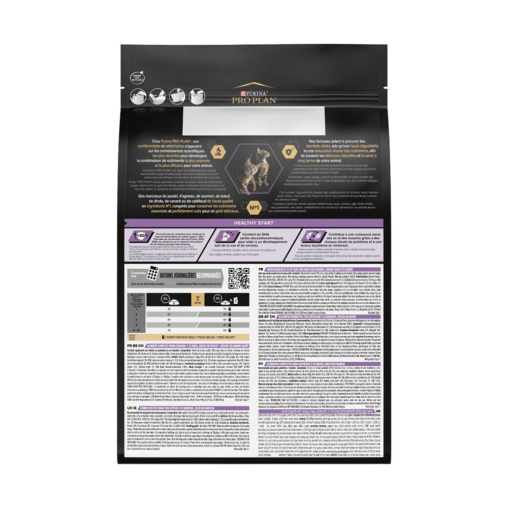 Η ξηρά τροφή Pro Plan Kitten είναι ειδικά σχεδιασμένη για να υποστηρίξει την ανάπτυξη στα γατάκια, ώστε να έχουν το καλύτερο ξεκίνημα στη ζωή τους και να αναπτυχθούν στο μέγιστο των δυνατοτήτων τους. Περιέχει ένα μείγμα συστατικών με βάση τη βιταμίνη C & D, DHA και πρωτόγαλα για να υποστηρίξει τη φυσική τους άμυνα. Διαθέτει επίσης DHA από ιχθυέλαιο για υγιή ανάπτυξη του εγκεφάλου και των ματιών και ισορροπημένα μέταλλα για γερά οστά και δόντια. Είναι απόλυτα ισορροπημένο ώστε να παρέχει την κατάλληλη ποσότητα ενέργειας για την υποστήριξη του ιδανικού σωματικού βάρους και υποστηρίζει το ανοσοποιητικό και την υγιή ανάπτυξη στα γατάκια.