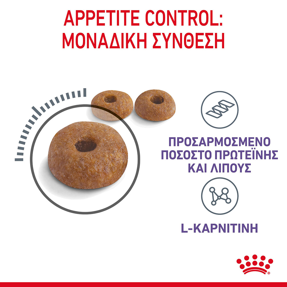 Το ROYAL CANIN® Appetite Control Care περιέχει ένα συγκεκριμένο μείγμα διαιτητικών ινών που βοηθά στην υποστήριξη του αισθήματος πληρότητας μετά το φαγητό, καθιστώντας λιγότερο πιθανή τη συμπεριφορά επαιτείας.